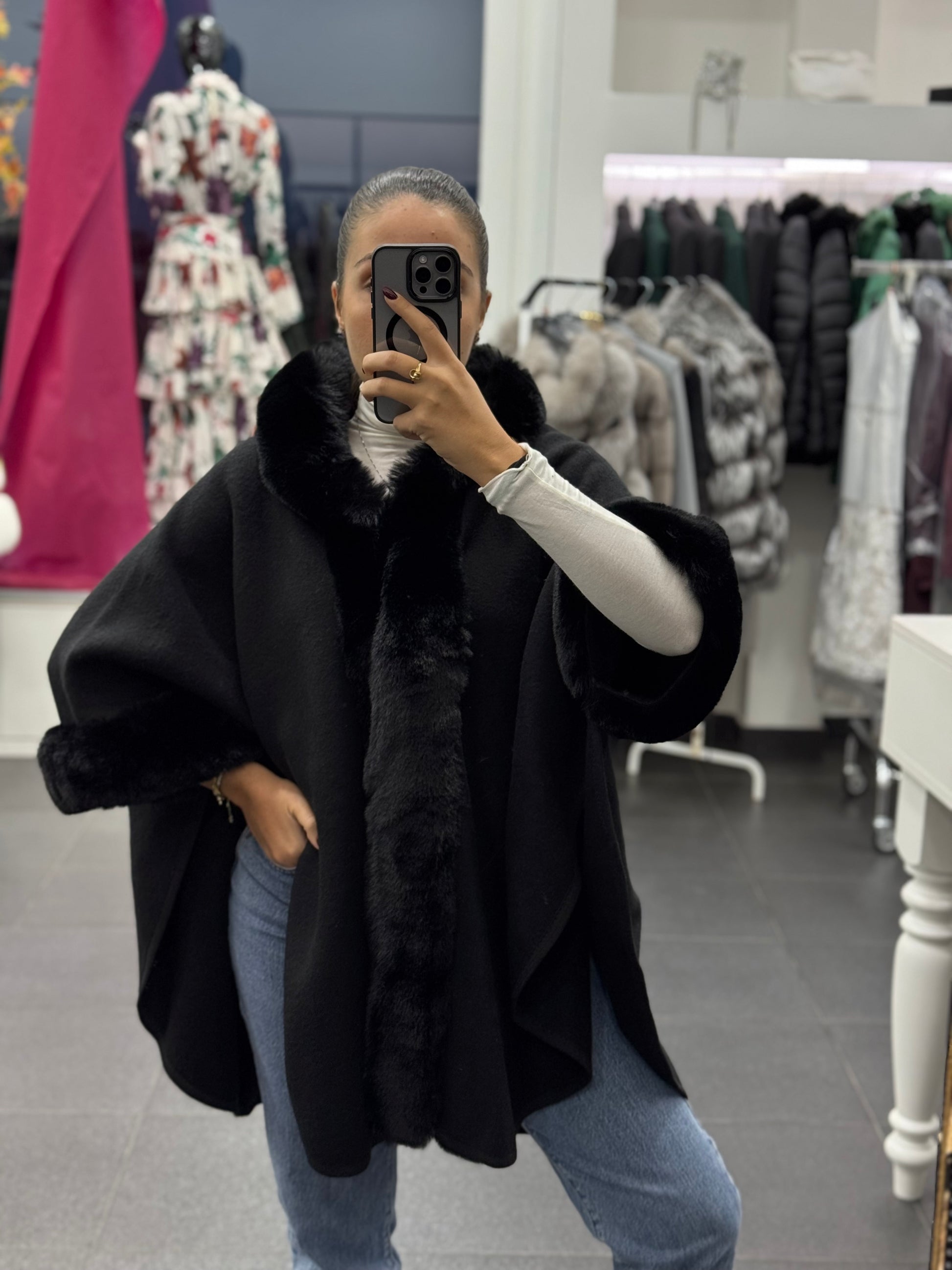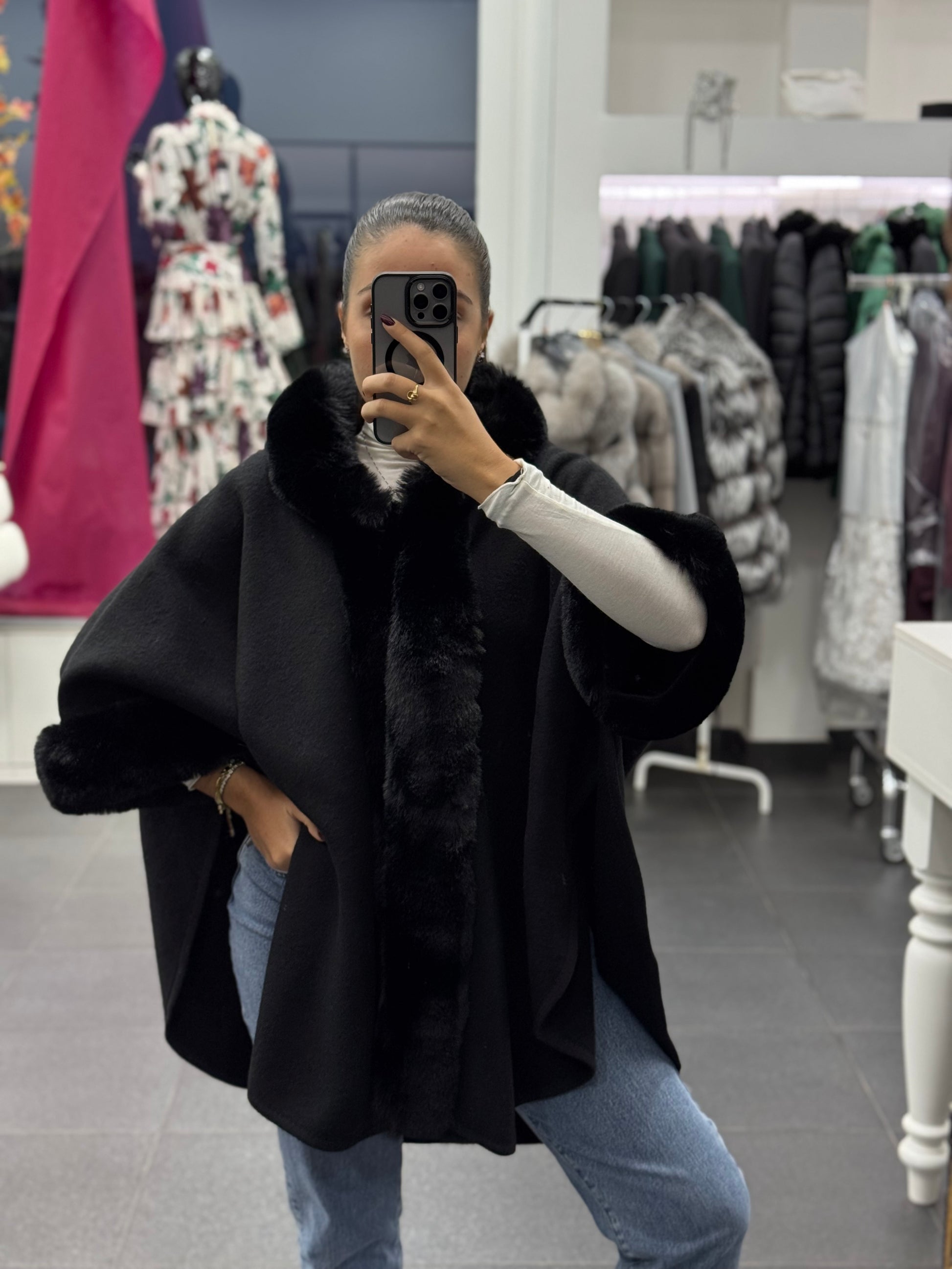 Mantella con bordo di pelliccia